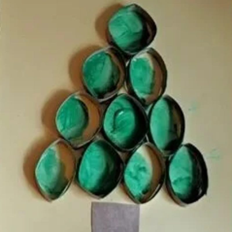 - Een eierdoos in de vorm van een kerstboom knippen. Deze groen laten verven en dan later sorteren en/of versieren met pompons.